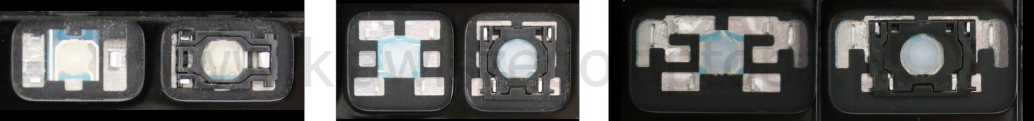 - Bei den meisten Tastaturen, die von außen identisch aussehen, wurden unterschiedliche Arten von Scharnieren unter den Tasten verwendet.