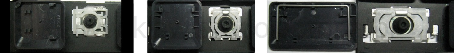 - Bei den meisten Tastaturen, die von außen identisch aussehen, wurden unterschiedliche Arten von Scharnieren unter den Tasten verwendet.