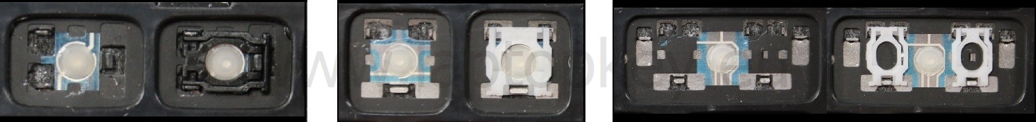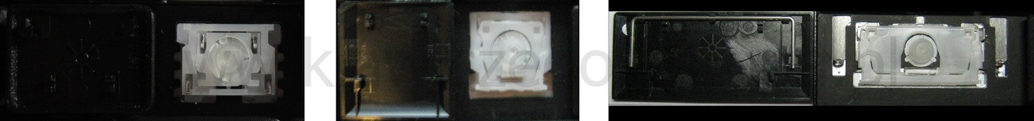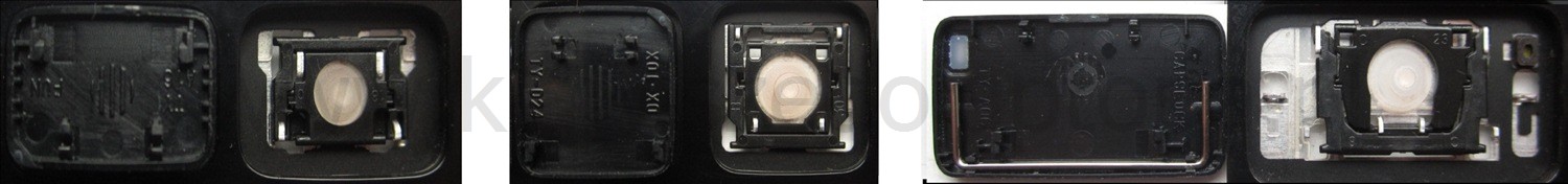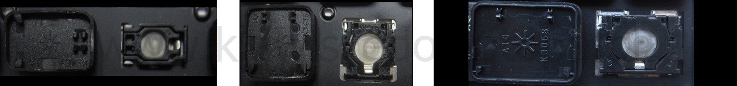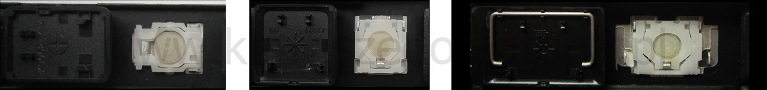 - Bei den meisten Tastaturen, die von außen identisch aussehen, wurden unterschiedliche Arten von Scharnieren unter den Tasten verwendet.
