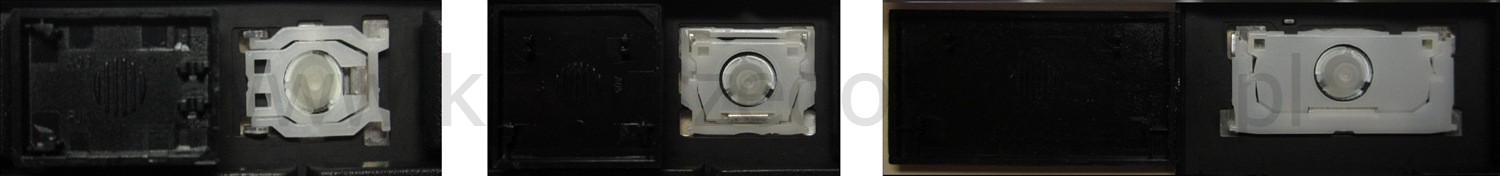 - Bei den meisten Tastaturen, die von außen identisch aussehen, wurden unterschiedliche Arten von Scharnieren unter den Tasten verwendet.