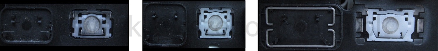 - Bei den meisten Tastaturen, die von außen identisch aussehen, wurden unterschiedliche Arten von Scharnieren unter den Tasten verwendet.