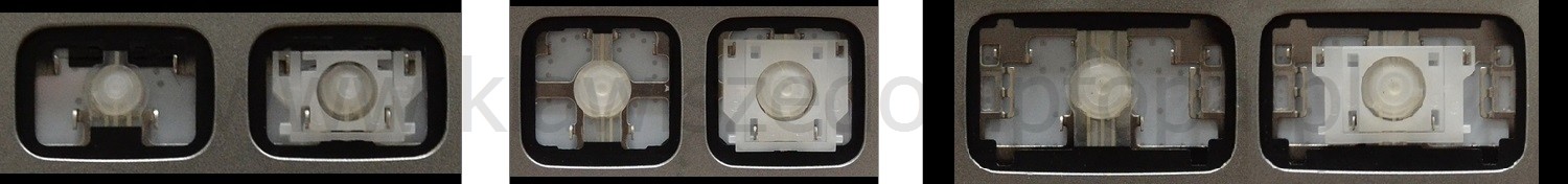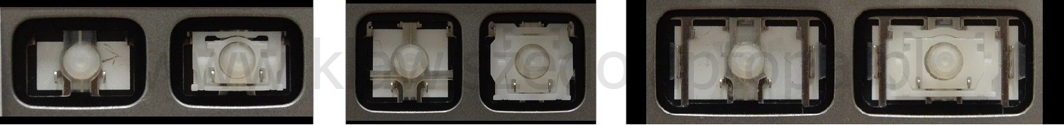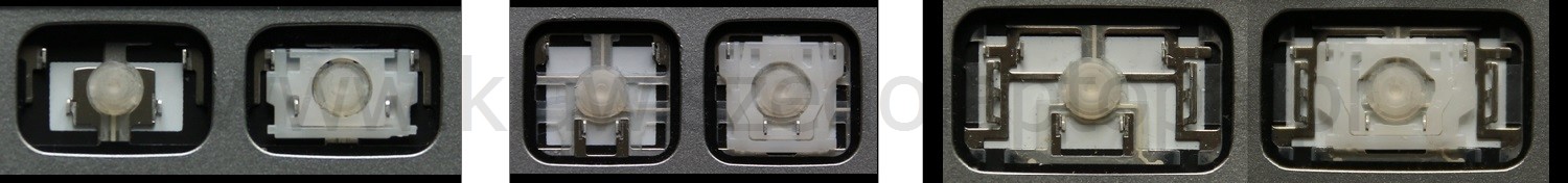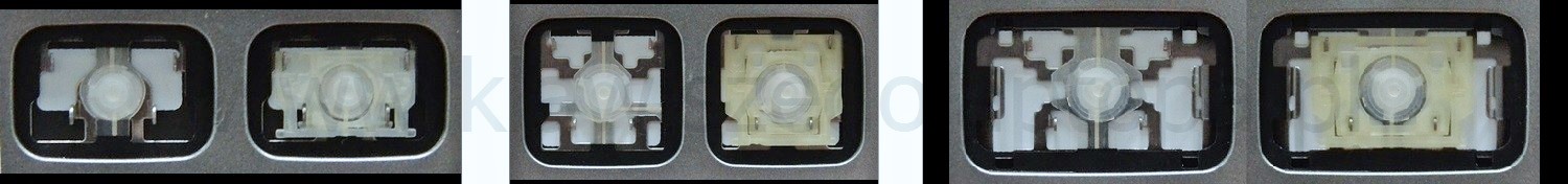 - Bei den meisten Tastaturen, die von außen identisch aussehen, wurden unterschiedliche Arten von Scharnieren unter den Tasten verwendet.