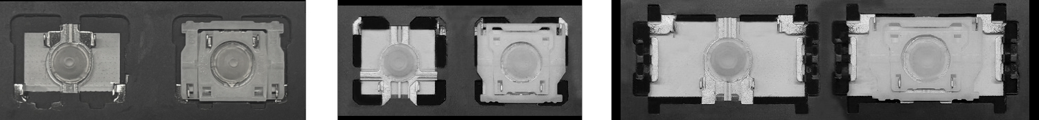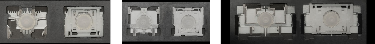 - Bei den meisten Tastaturen, die von außen identisch aussehen, wurden unterschiedliche Arten von Scharnieren unter den Tasten verwendet.