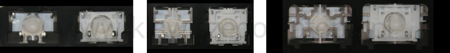 - Bei den meisten Tastaturen, die von außen identisch aussehen, wurden unterschiedliche Arten von Scharnieren unter den Tasten verwendet.