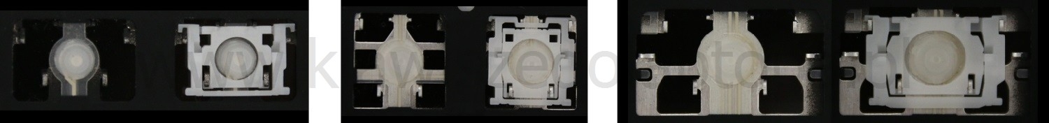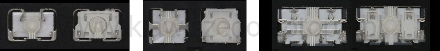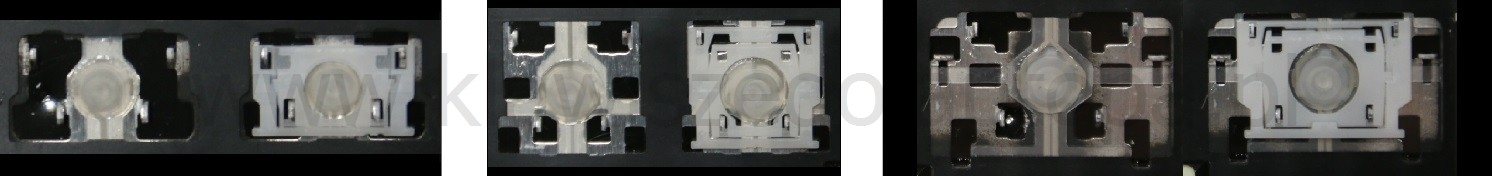 - Bei den meisten Tastaturen, die von außen identisch aussehen, wurden unterschiedliche Arten von Scharnieren unter den Tasten verwendet.