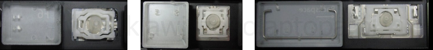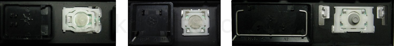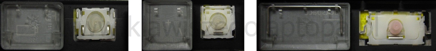 - Bei den meisten Tastaturen, die von außen identisch aussehen, wurden unterschiedliche Arten von Scharnieren unter den Tasten verwendet.