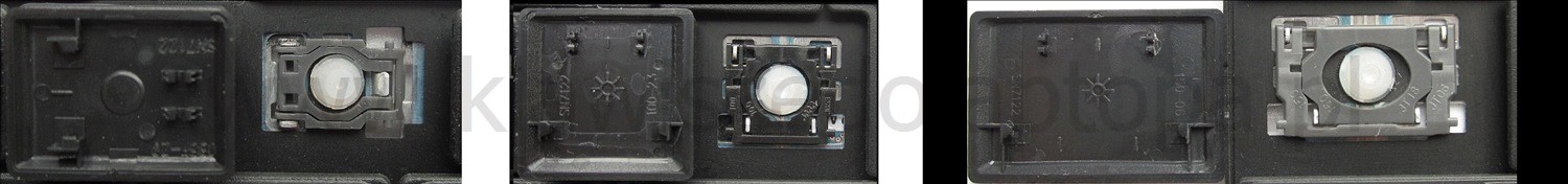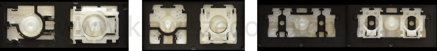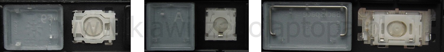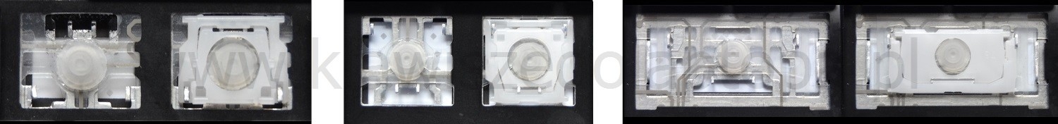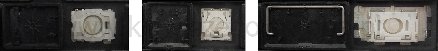 - Bei den meisten Tastaturen, die von außen identisch aussehen, wurden unterschiedliche Arten von Scharnieren unter den Tasten verwendet.