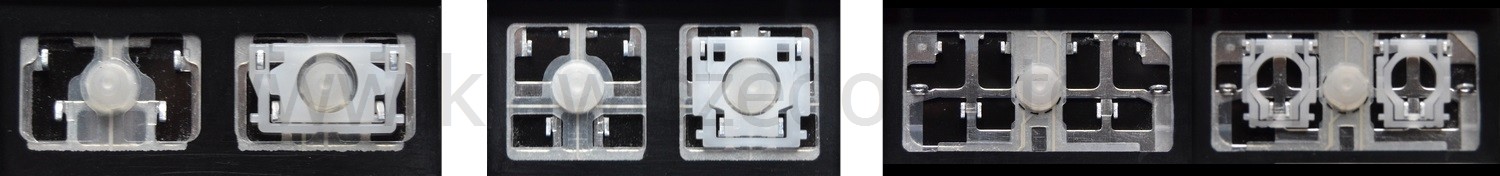- Bei den meisten Tastaturen, die von außen identisch aussehen, wurden unterschiedliche Arten von Scharnieren unter den Tasten verwendet.