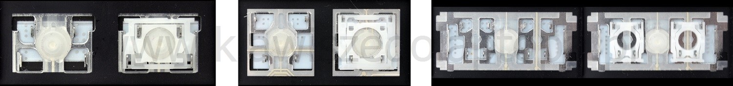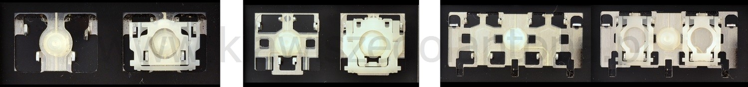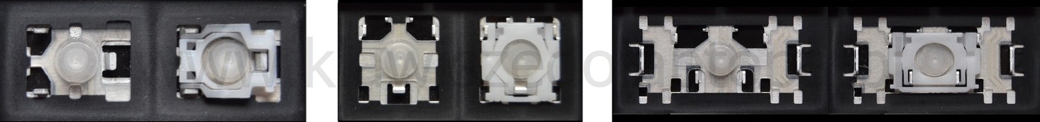 - Bei den meisten Tastaturen, die von außen identisch aussehen, wurden unterschiedliche Arten von Scharnieren unter den Tasten verwendet.
