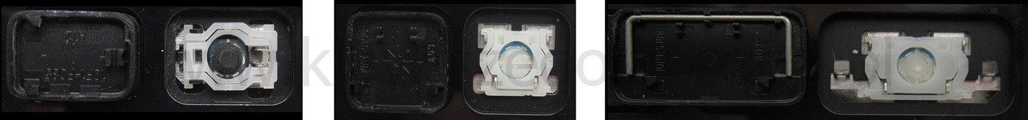 - Bei den meisten Tastaturen, die von außen identisch aussehen, wurden unterschiedliche Arten von Scharnieren unter den Tasten verwendet.