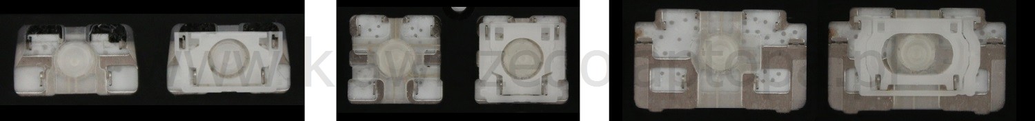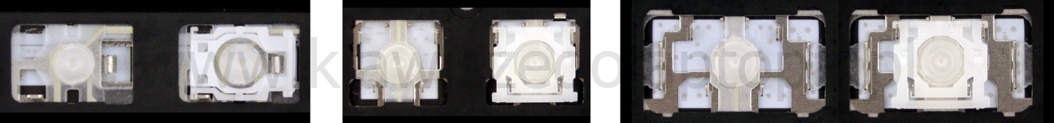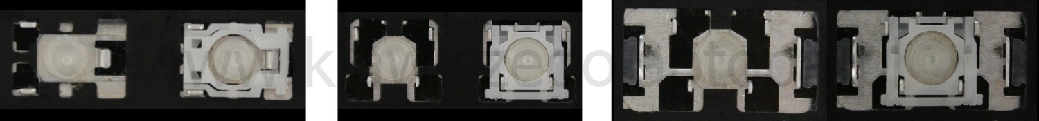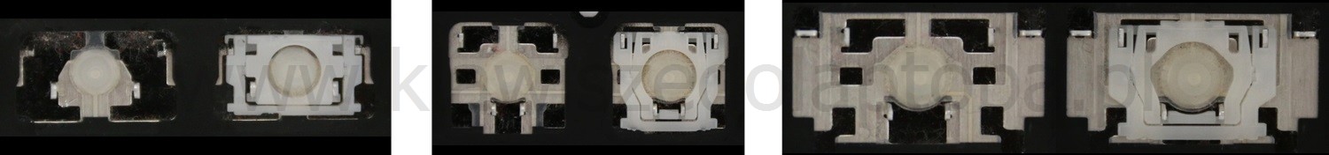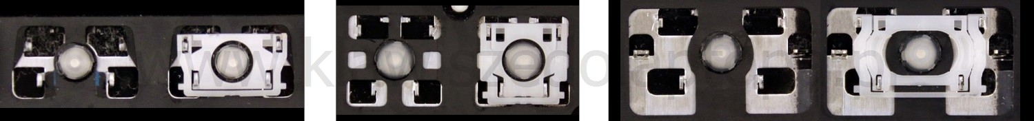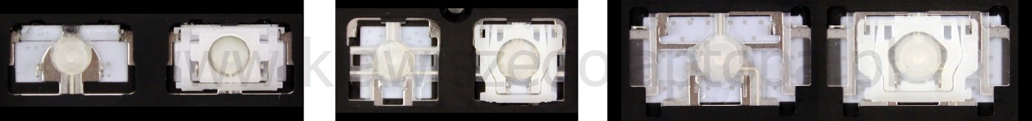 - Bei den meisten Tastaturen, die von außen identisch aussehen, wurden unterschiedliche Arten von Scharnieren unter den Tasten verwendet.
