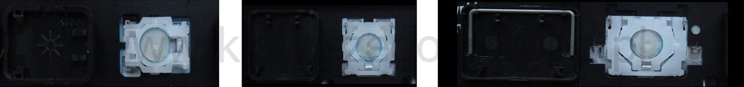 - Bei den meisten Tastaturen, die von außen identisch aussehen, wurden unterschiedliche Arten von Scharnieren unter den Tasten verwendet.