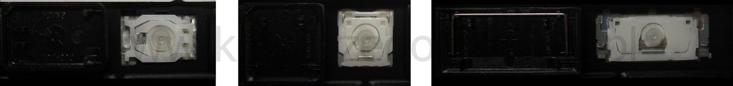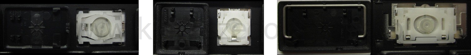 - Bei den meisten Tastaturen, die von außen identisch aussehen, wurden unterschiedliche Arten von Scharnieren unter den Tasten verwendet.