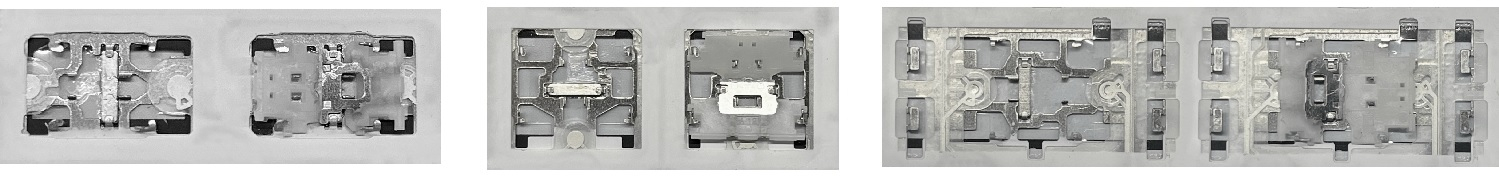 - Bei den meisten Tastaturen, die von außen identisch aussehen, wurden unterschiedliche Arten von Scharnieren unter den Tasten verwendet.