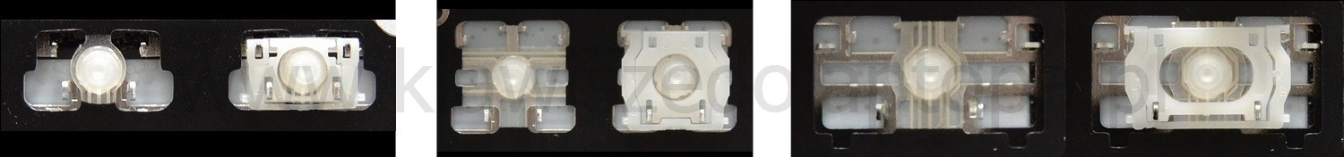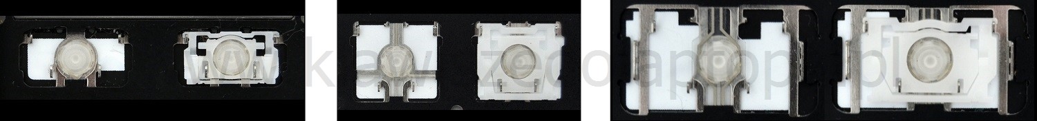 - Bei den meisten Tastaturen, die von außen identisch aussehen, wurden unterschiedliche Arten von Scharnieren unter den Tasten verwendet.