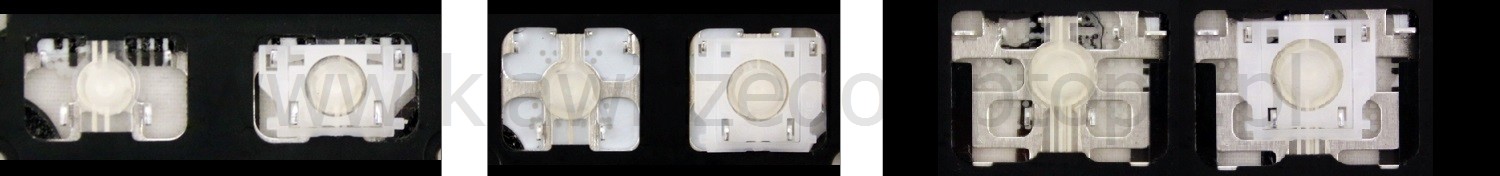 - Bei den meisten Tastaturen, die von außen identisch aussehen, wurden unterschiedliche Arten von Scharnieren unter den Tasten verwendet.