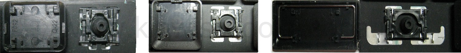 - Bei den meisten Tastaturen, die von außen identisch aussehen, wurden unterschiedliche Arten von Scharnieren unter den Tasten verwendet.