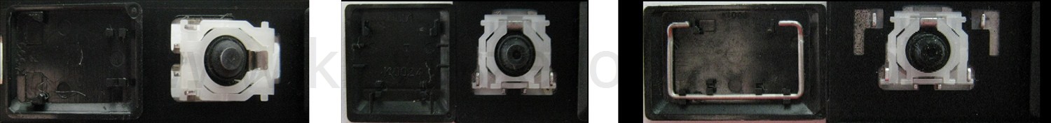 - Bei den meisten Tastaturen, die von außen identisch aussehen, wurden unterschiedliche Arten von Scharnieren unter den Tasten verwendet.