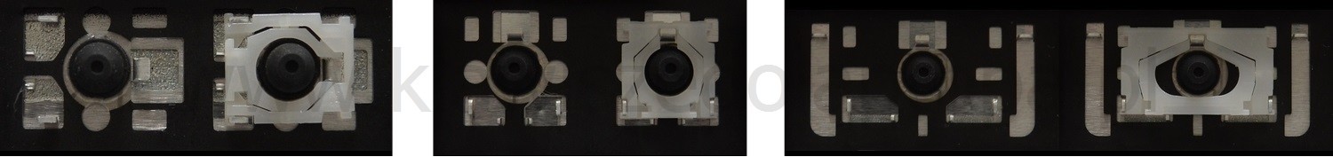 - Bei den meisten Tastaturen, die von außen identisch aussehen, wurden unterschiedliche Arten von Scharnieren unter den Tasten verwendet.