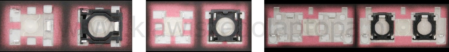 - Bei den meisten Tastaturen, die von außen identisch aussehen, wurden unterschiedliche Arten von Scharnieren unter den Tasten verwendet.