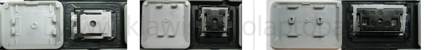 - Bei den meisten Tastaturen, die von außen identisch aussehen, wurden unterschiedliche Arten von Scharnieren unter den Tasten verwendet.