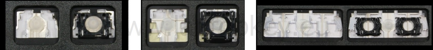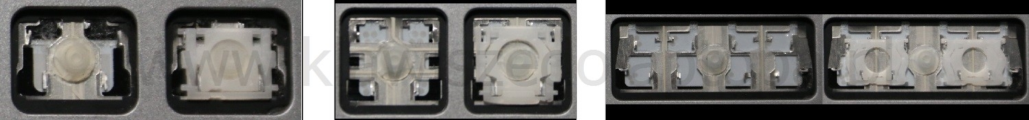 - Bei den meisten Tastaturen, die von außen identisch aussehen, wurden unterschiedliche Arten von Scharnieren unter den Tasten verwendet.