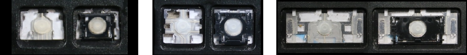 - Bei den meisten Tastaturen, die von außen identisch aussehen, wurden unterschiedliche Arten von Scharnieren unter den Tasten verwendet.