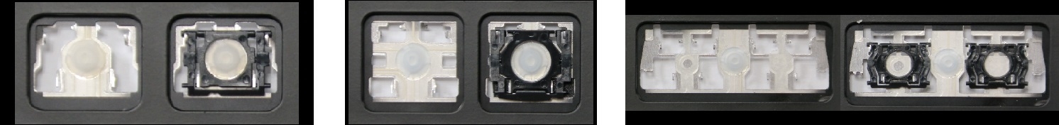 - Bei den meisten Tastaturen, die von außen identisch aussehen, wurden unterschiedliche Arten von Scharnieren unter den Tasten verwendet.