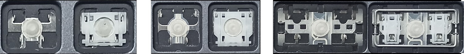 - Bei den meisten Tastaturen, die von außen identisch aussehen, wurden unterschiedliche Arten von Scharnieren unter den Tasten verwendet.