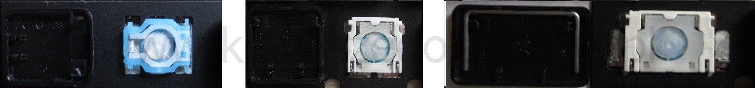 - Bei den meisten Tastaturen, die von außen identisch aussehen, wurden unterschiedliche Arten von Scharnieren unter den Tasten verwendet.