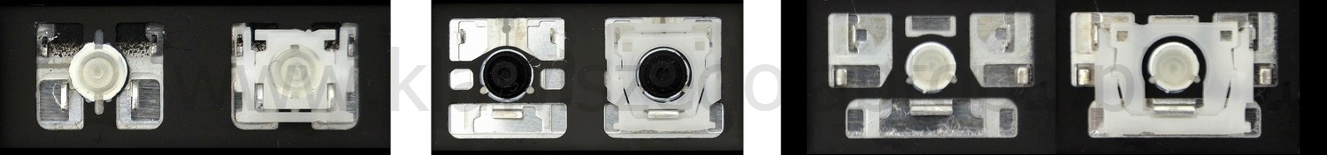 - Bei den meisten Tastaturen, die von außen identisch aussehen, wurden unterschiedliche Arten von Scharnieren unter den Tasten verwendet.