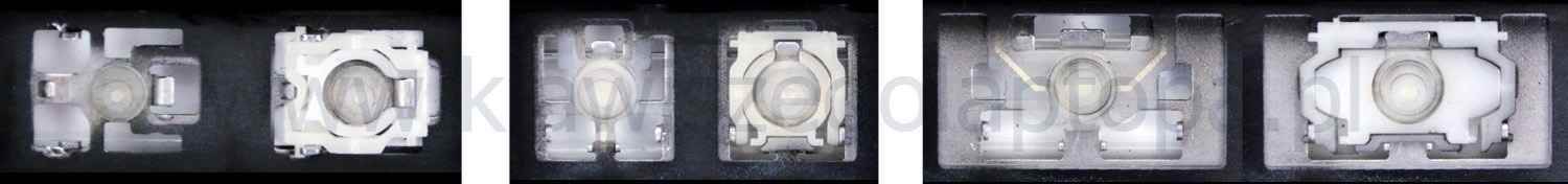 - Bei den meisten Tastaturen, die von außen identisch aussehen, wurden unterschiedliche Arten von Scharnieren unter den Tasten verwendet.