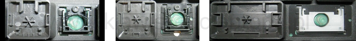 - Bei den meisten Tastaturen, die von außen identisch aussehen, wurden unterschiedliche Arten von Scharnieren unter den Tasten verwendet.