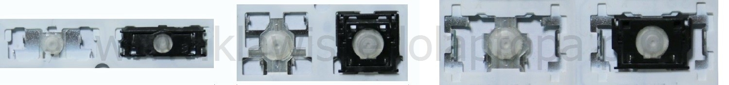 - Bei den meisten Tastaturen, die von außen identisch aussehen, wurden unterschiedliche Arten von Scharnieren unter den Tasten verwendet.