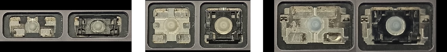 - Bei den meisten Tastaturen, die von außen identisch aussehen, wurden unterschiedliche Arten von Scharnieren unter den Tasten verwendet.