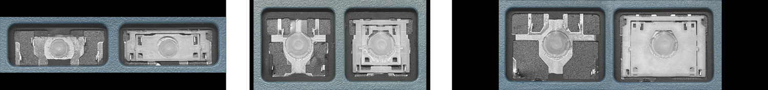 - Bei den meisten Tastaturen, die von außen identisch aussehen, wurden unterschiedliche Arten von Scharnieren unter den Tasten verwendet.