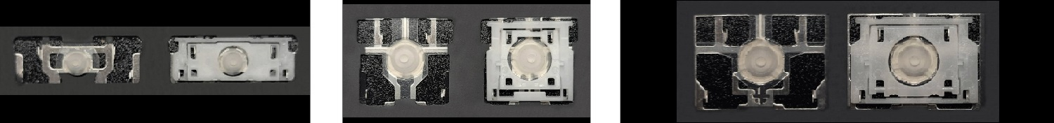 - Bei den meisten Tastaturen, die von außen identisch aussehen, wurden unterschiedliche Arten von Scharnieren unter den Tasten verwendet.