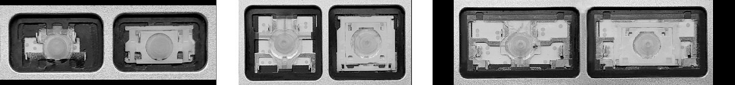 - Bei den meisten Tastaturen, die von außen identisch aussehen, wurden unterschiedliche Arten von Scharnieren unter den Tasten verwendet.