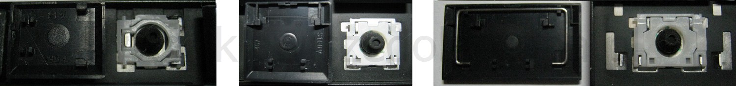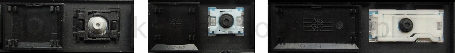 - Bei den meisten Tastaturen, die von außen identisch aussehen, wurden unterschiedliche Arten von Scharnieren unter den Tasten verwendet.