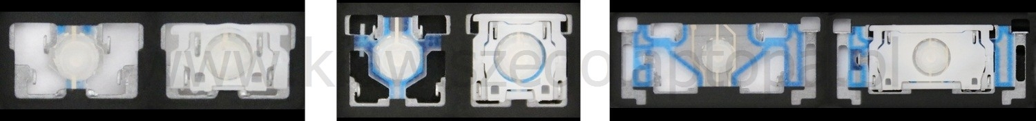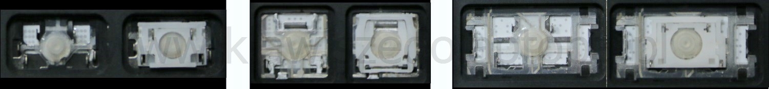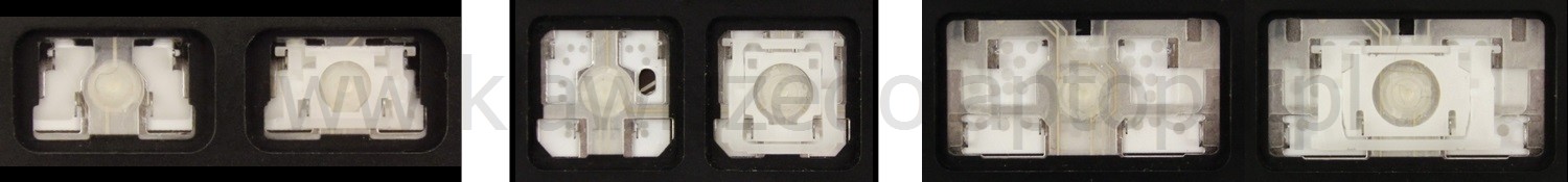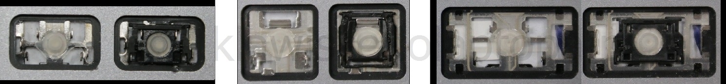 - Bei den meisten Tastaturen, die von außen identisch aussehen, wurden unterschiedliche Arten von Scharnieren unter den Tasten verwendet.