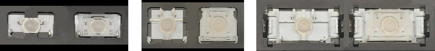 - Bei den meisten Tastaturen, die von außen identisch aussehen, wurden unterschiedliche Arten von Scharnieren unter den Tasten verwendet.