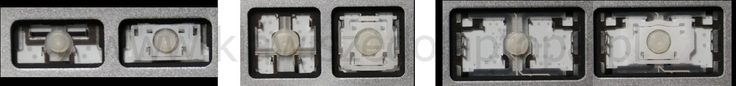 - Bei den meisten Tastaturen, die von außen identisch aussehen, wurden unterschiedliche Arten von Scharnieren unter den Tasten verwendet.