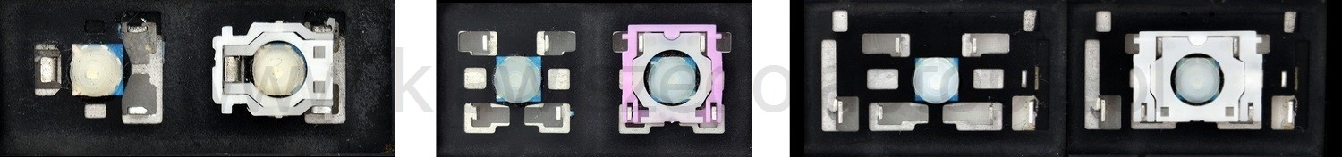 - Bei den meisten Tastaturen, die von außen identisch aussehen, wurden unterschiedliche Arten von Scharnieren unter den Tasten verwendet.