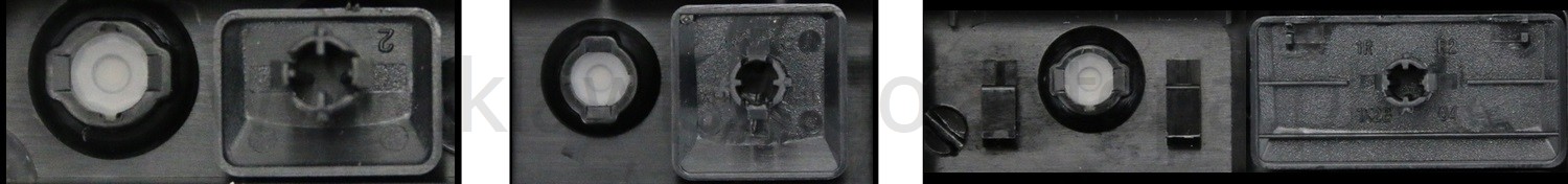 - Bei den meisten Tastaturen, die von außen identisch aussehen, wurden unterschiedliche Arten von Scharnieren unter den Tasten verwendet.