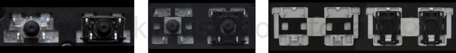 - Bei den meisten Tastaturen, die von außen identisch aussehen, wurden unterschiedliche Arten von Scharnieren unter den Tasten verwendet.