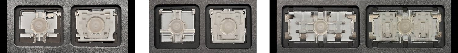 - Bei den meisten Tastaturen, die von außen identisch aussehen, wurden unterschiedliche Arten von Scharnieren unter den Tasten verwendet.