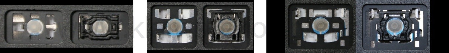 - Bei den meisten Tastaturen, die von außen identisch aussehen, wurden unterschiedliche Arten von Scharnieren unter den Tasten verwendet.