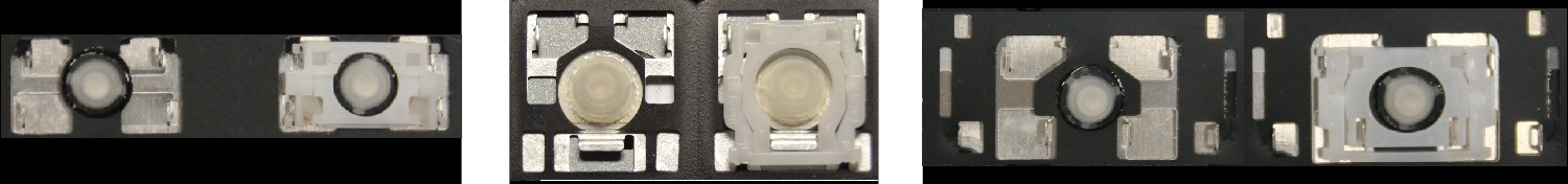 - Bei den meisten Tastaturen, die von außen identisch aussehen, wurden unterschiedliche Arten von Scharnieren unter den Tasten verwendet.