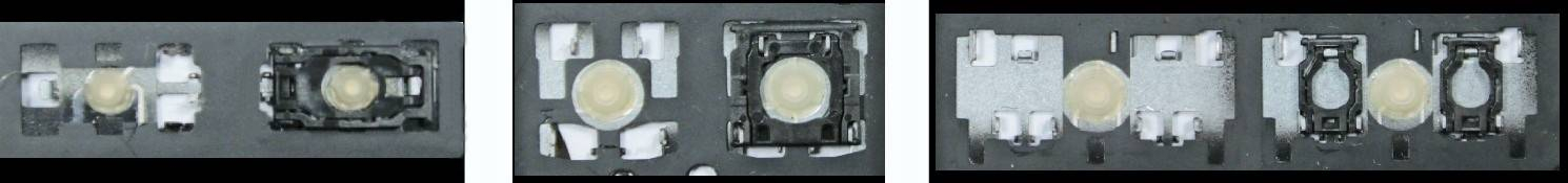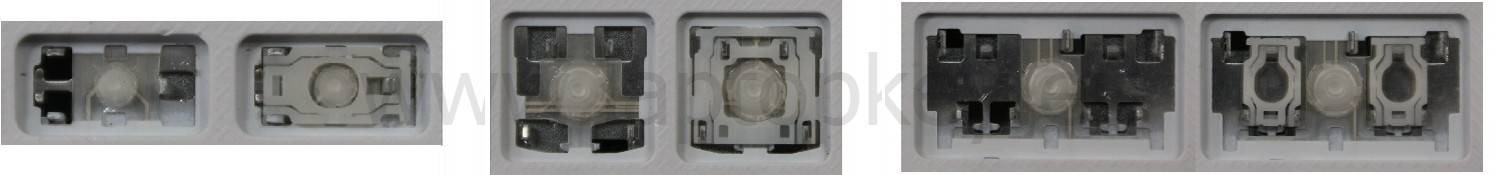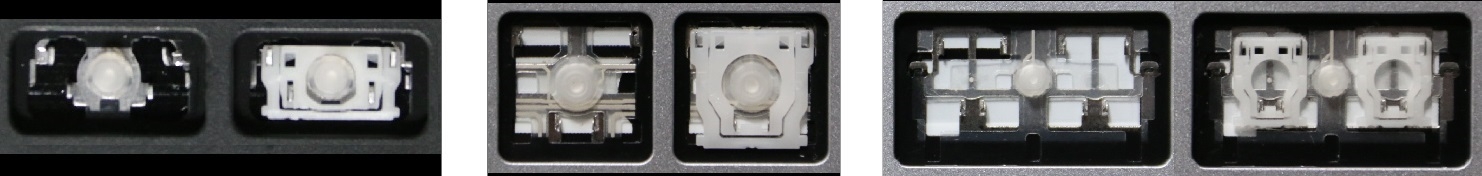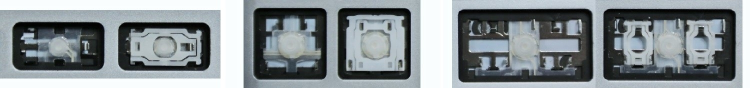 - Bei den meisten Tastaturen, die von außen identisch aussehen, wurden unterschiedliche Arten von Scharnieren unter den Tasten verwendet.