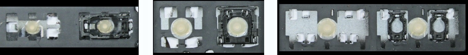 - Bei den meisten Tastaturen, die von außen identisch aussehen, wurden unterschiedliche Arten von Scharnieren unter den Tasten verwendet.